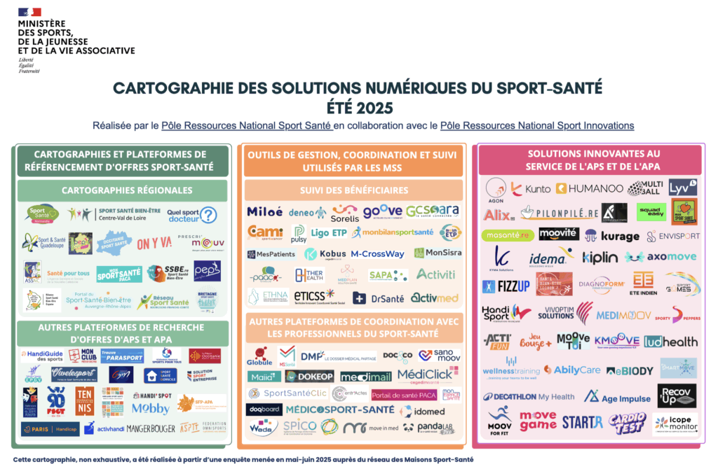 Le Pôle Ressources National Sport Santé (PRN2S) vient de publier une cartographie des solutions numériques au service du Sport Santé en France.